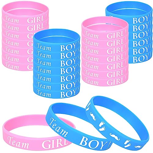 Gender Reveal armband, 30 stycken team boy och team tjej silikonarmband, kön avslöjande etiketter tillbehör för babyparty, kön promotion party present, Silikon