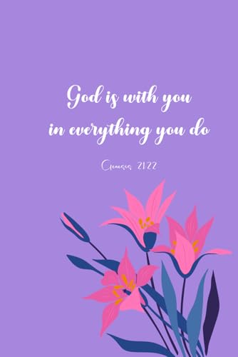 Inspirational Scripture Notebook, 120 College Ruled Lined Pages - God is with you Genesis 21:22 , Floral Purple Matte Softcover, 6 x 9 Inches