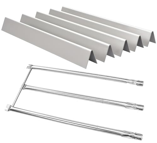 Denmay 7621 44,45 cm smakfördelningsstänger för Weber Genesis 300 310 E310 E320 E330 S310 S320 S330 Grillar med främre kontroller, uppsättning av 5 värmeplattor i porslin stål för Weber Genesis grilldelar 7620