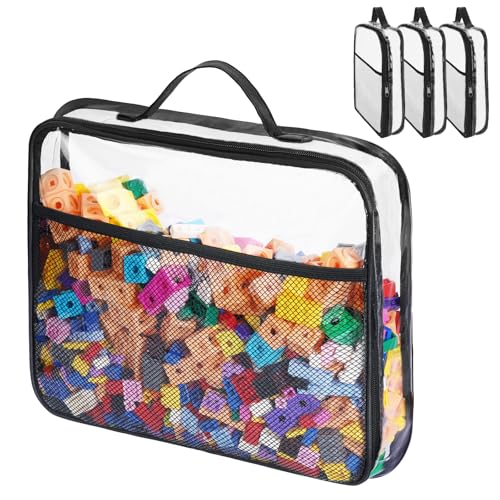 HOTUT PVC-leksaksförvaringspåsar, 4 st PVC-förvaring organiseringsväskor med nätsidofickor, genomskinlig dubbel dragkedja, handtag, block brädspel förvaring