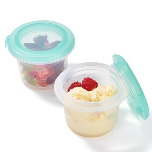 U-Taste 125ml silikonmatbehållare: Förvaring för små kök med lufttätt lock, frys- och mikrovågssäker, snackslåda med datummärkningscirkel, genomskinlig stapelbar för yoghurt, hummus (Aqua Sky, 2 st)