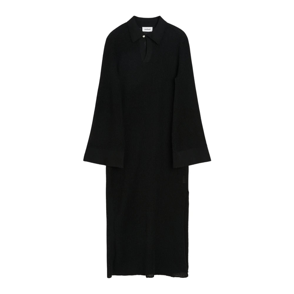 Soulland, Klänningar , Dam, M/L, Genomskinlig Stickad Klänning med Krage