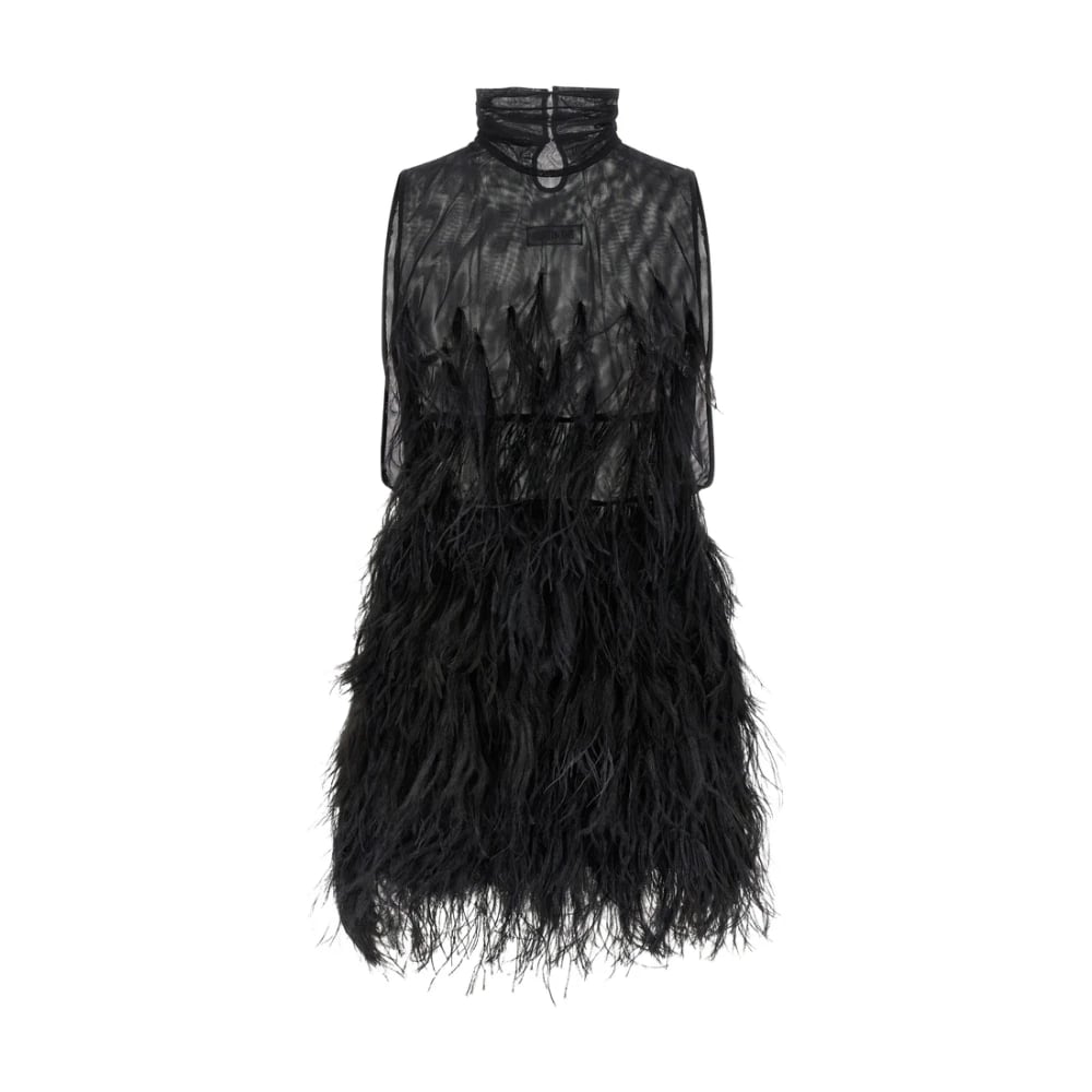 The Attico, Klänningar , Dam, S, Paljetter, Fjäderdekorerad genomskinlig svart klänning
