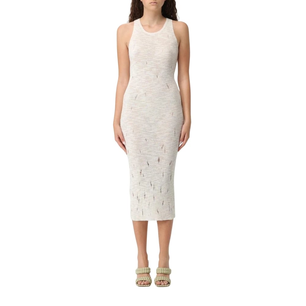 Pinko, Klänningar , Dam, S, Bomull, Genomskinlig Detalj Stickad Klänning Stilfull Look