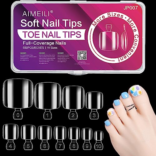 AIMEILI Tips för tånaglar, 550 st falska nagelspetsar, genomskinlig kista heltäckande spikspetsar för blötläggning av nagelförlängning, akryl falskpress på naglar med låda för nagelkonstsalong, 11 storlekar