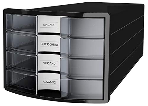 HAN 1012-363 Impuls låda A4/C4 4 stängda lådor svart/genomskinlig