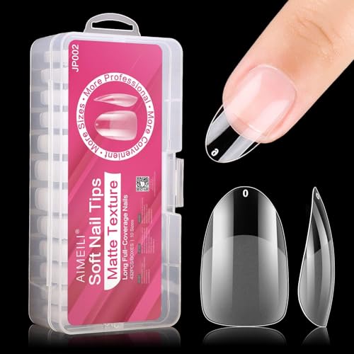 AIMEILI falska nagelspetsar, 432 st genomskinlig matt kista heltäckande spikspetsar för blötläggning av nagelförlängning, akryl falskpress på naglar med låda för nagelkonstsalong, 10 storlekar