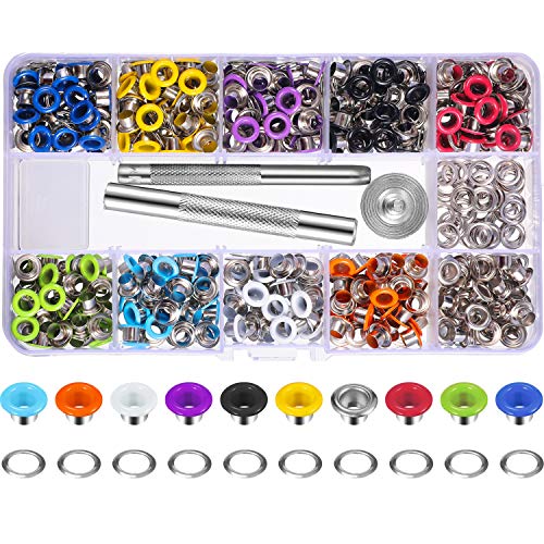 400 set 3/16 tum flerfärgade öljetter kit metallöljetter med installationsverktyg och instruktör i genomskinlig låda