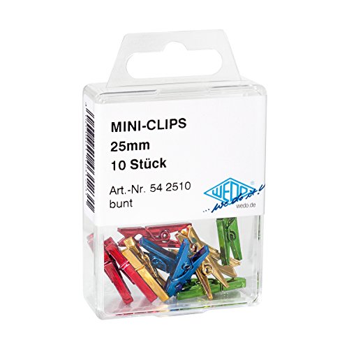 Wedo 542510 klämma miniclip plast (i genomskinlig låda, 25 mm) 10 styck, färgsorterad