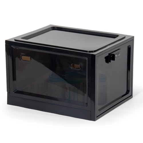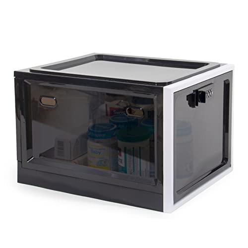 Theo&Cleo Förvaringslåda för medicin, låsbar genomskinlig låda för mobiltelefoner, godis, mellanmål, personligt kassaskåp, vikbar (svart)