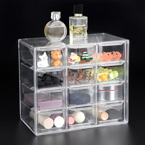 Supaway Mini genomskinlig låda arrangör små lådor stapelbar skrivbordslåda för makeup, smycken, kontorsmaterial och hantverk (12 lådor)
