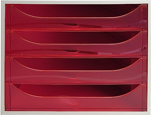 Exacompta - Ref 228654D - ECOBOX ekonomisk låda - Individuell låda med 4 lådor för A4 och A4+ dokument - Mått 34,8 x 28,4 x 23,4 cm - Färg grå/genomskinlig hallon