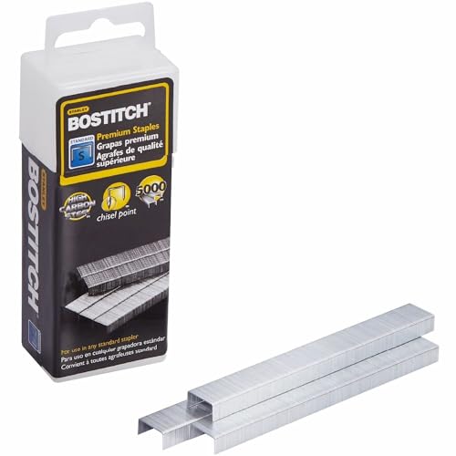 Bostitch Office Premium standard häftklamrar i genomskinlig plastlåda, 1/4 tum ben, reducerad sylt, 5 000 per låda (SB10)