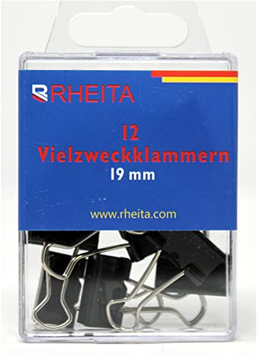 Rheita 1031-7 foldback-klämmor 19 mm, svart, 12 stycken i genomskinlig låda, svart