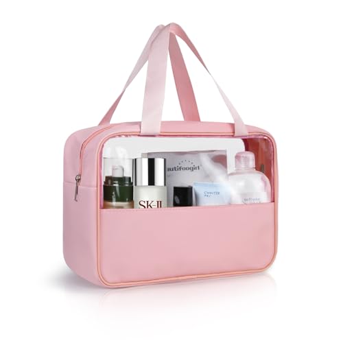 Luxoraiova Sminkväska genomskinlig, necessär dam, bärbar necessär herr, flygplan PVC tvättväska dam vattentät, kulturväskor för män, kvinnor, familj (rosa), ROSA, Hem