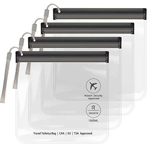 4 st klar TSA-godkänd säkerhets-necessär 20 x 20 cm godkänd av EU och Storbritanniens handbagageföreskrifter vattentäta vätskeväskor resväska tvättväska för kvinnor/män, genomskinlig, Klar