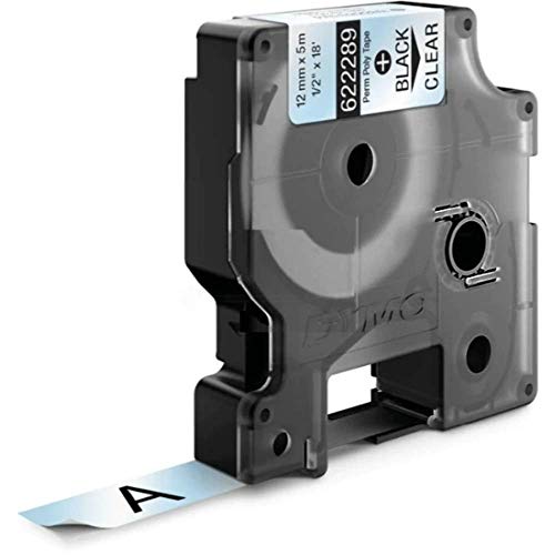 Industriella, permanenta DYMO Rhino-polyesteretiketter | 12 mm × 5,5 m | Svart text på genomskinlig tejp | Självhäftande | För LabelManager- och Rhino-etikettskrivare