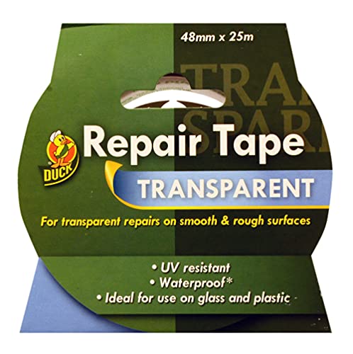 Duck genomskinlig reparationstejp 48 mm x 25 m | Genomskinlig tejp, stark, vattentät utomhusreparation, höghållfast lim, idealisk för sprucket glas, trasig plast, UV-resistent