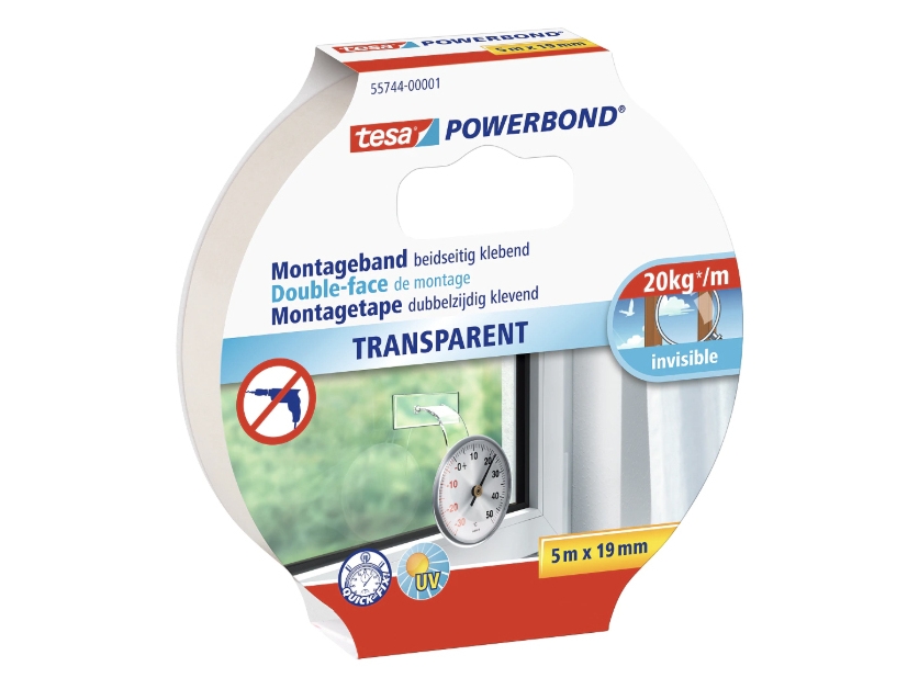 Tesa Powerbond dubbelsidig tejp - 19 mm x 5 m - genomskinlig