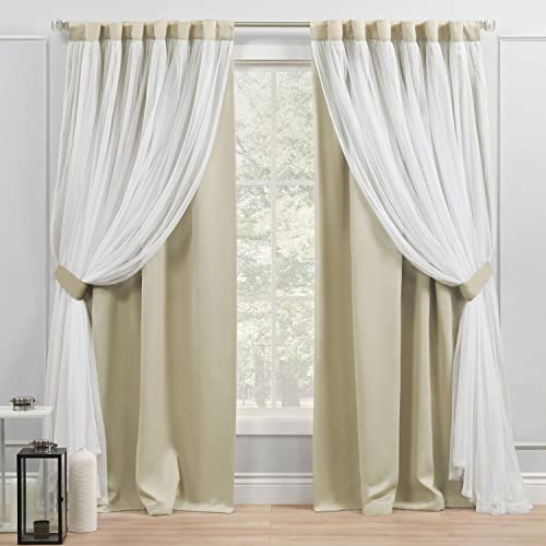 Exklusivt hem Catarina HT lager enfärgat mörkläggande mörkläggning och genomskinlig dold flik/stång ficka topp gardin panel par, 52 x 96, sand