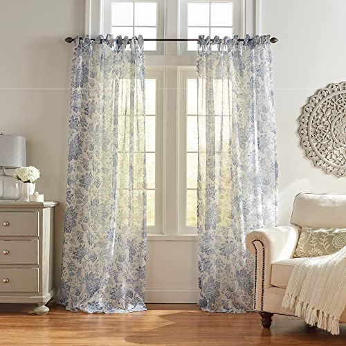 Elrene blommig slip-topp genomskinlig fönstergardinpanel, poly-linneblandning, indigo, 132 cm B x 213 cm L (paket med 1)