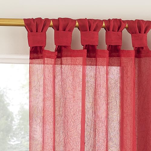 Nej. 918 Margaret 2-pack semester twist flik krossad textur genomskinlig flik topp gardin panel par, 130 cm x 160 cm, semester röd