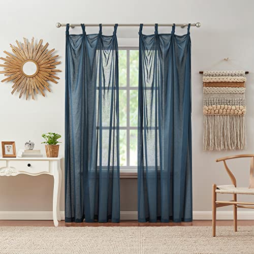 Indigo Ink | Mia Collection | Blå Gauzy Knuten slips topp genomskinlig gardinpanel, 178 cm x 241 cm