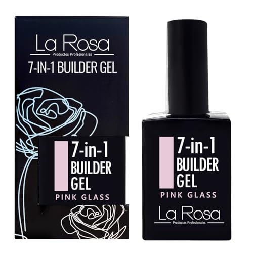 LaRosa 7-i-1 BYGGGEL i Flaska – Stärkande UV Builder Gel 15 ml för Nagelförlängning, Långvarig Bas-/Topplack - GENOMSKINLIG ROSA