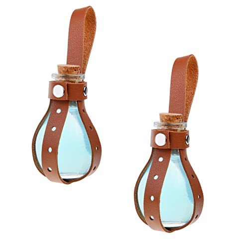 Eco-Fused 2x liten Cosplay Potion-flaska - genomskinlig sfärisk Cosplay, Wizard, häxdräkttillbehör - Inkluderar korkpropp, brunt konstläderhållare, bältesögla - gör det själv, hantverk, rekvisita