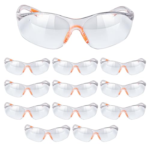 Kurtzy Set med 12 genomskinliga säkerhetsglasögon - skyddsglasögon med plastlinser, näsbro och gummigrenspetsar för ökad komfort - PPE transparent glasögon