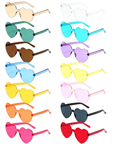 14 par kantlösa solglasögon i hjärtform, ramlösa hjärtsolglasögon, genomskinliga, godisfärgade glas, tonade glasögon, svensexor, 14 färger