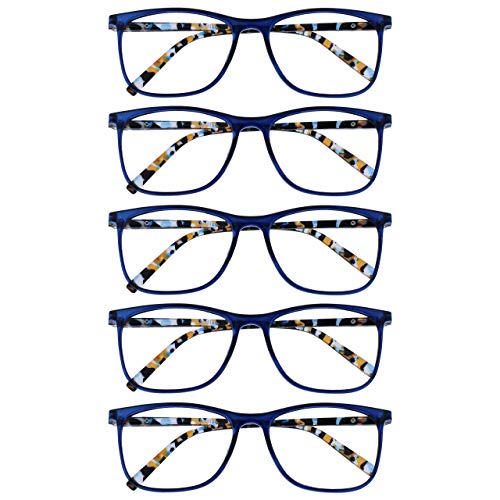 OPULIZE Arc Pack 5 stora läsglasögon glasögon svart brun blå lila herr dam fjädergångjärn RRRRR66, Blå med genomskinliga mönstrade armar, 2,00 Grossissement