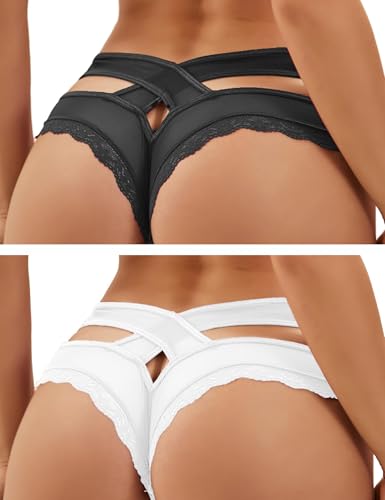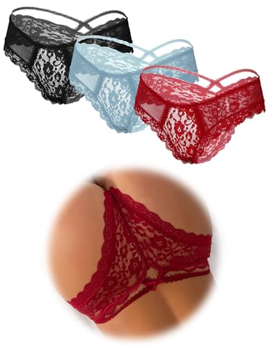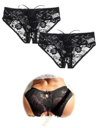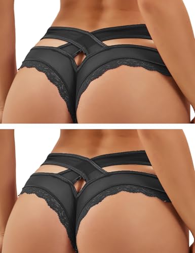 ohmydear Förförisk öppen stringtrosa med hål trosor dam genomskinliga underkläder sexiga underkläder spets stringtrosa sexydonna erotisk stor storlek underkläder korsade remmar fram, 2 svart, M-L