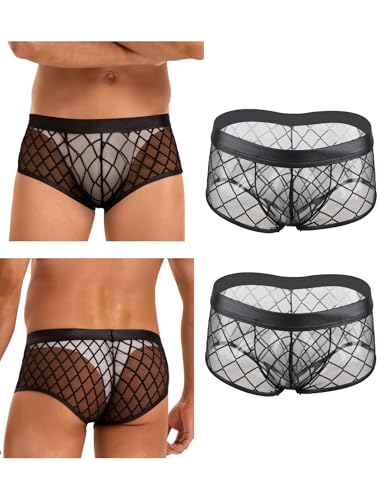 comeondear Boxershorts för män sexiga genomskinliga trosor med låg midja mesh boxershorts plus storlek stringtrosa förförisk stretch trosor bekväma underkläder, 2-svart + svart + låda, S