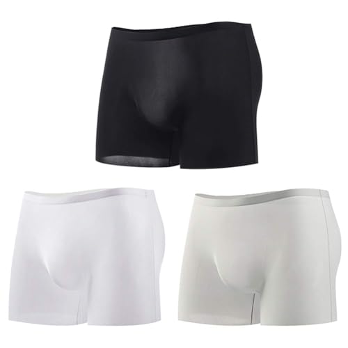 Alienjoy Boxershorts för män, tunna issilke, underkläder, sexiga genomskinliga sömlösa trosor, hudvänliga, låga stigar, A1-svart/vit/grå (förpackning med 3), L