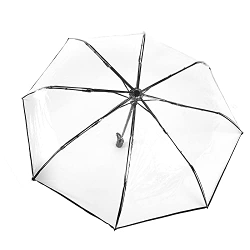Hopfällbart genomskinligt paraply Regnparaplyer Bärbart trippelt dammode paraply Klar bubbelskydd(Black)