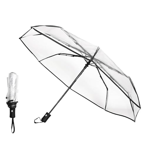 Shengxi Genomskinligt paraply, bärbart mode transparent vindtätt reseparaply, automatiskt trefaldigt paraply för bröllop, fotograferingstillbehör, Genomskinlig