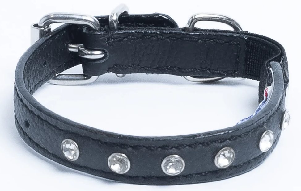 Katthalsband Genuine Leather med Srass Svart, XS