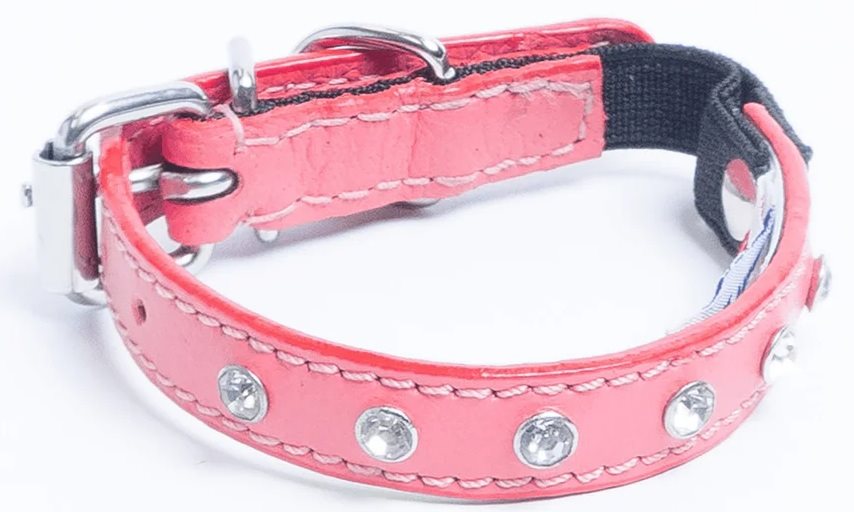 Katthalsband Genuine Leather med Srass Rosa, S
