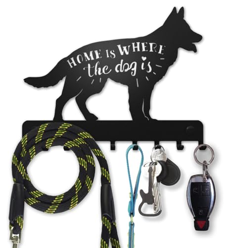 SirHoldeer M-KeyCases Nyckelbräda German Shepherd hund väggdekoration (9-krok) dekorativ nyckelbräda krok stång nyckelstång vintage dekor husdörr kök fordonsnyckel hängare svart