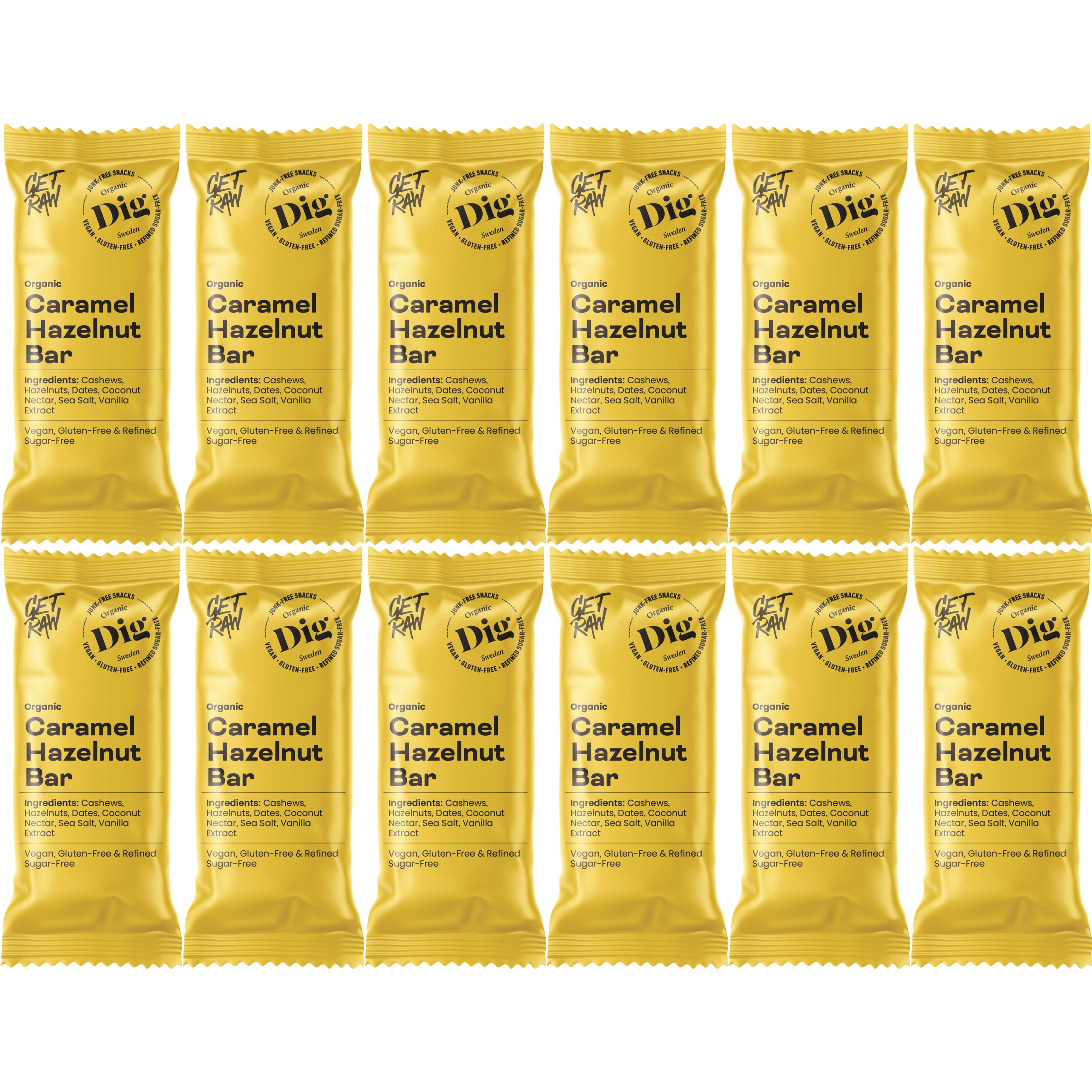 Dig GET RAW Organic Caramel Hazelnut Bar 12 x 42g