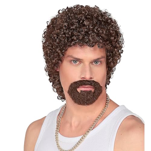 Widmann 51637 – peruk Mr. Wonderful, brun, med getskägg, 80-tal, temafest, karneval