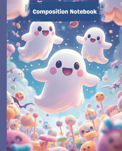 Halloween theme Composition Notebook | Lined Notebook for Students | Kawaii-style cute ghost theme Cover (7.5” x 9.25”)| 110 Pages:: Kawaii style ... School Notes, Journaling,and October Writing