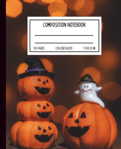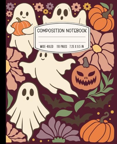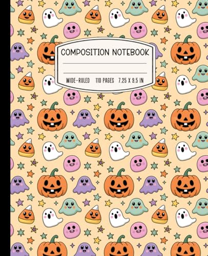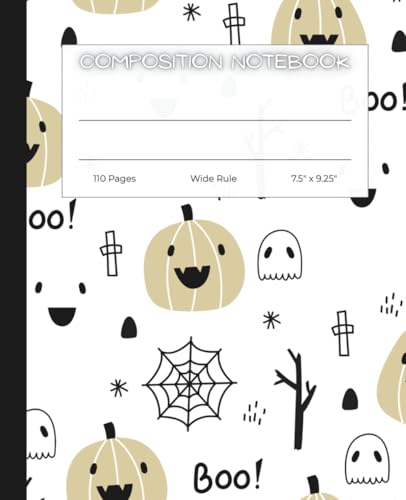 Halloween Composition Notebook – Wide Ruled – 110 Pgs – 7.5 x 9.25 – Happy Pumpkin Journal with Cute Ghost Cover – Great for Writing, Homework, and ... Ruled Notebook for Kids, Students & Teachers
