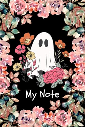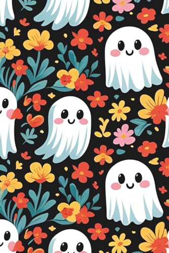 Cute Ghost and with Flowers Notebook | Aesthetic Black Lined Journal 6x9, 120 Pages: Adorable Ghost and Floral Cover – Stylish Lined Notebook for Writing, Journaling, and Everyday Notes