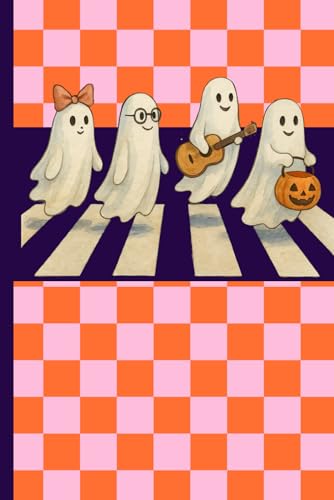 Cute Ghost Halloween Composition Notebook – Wide-Ruled | Orange Gingham Fall Cover with Pumpkin & Spider Web | 120 Pages, 7.5 x 9.25 in: Adorable ... for Girls, Teens, or Spooky Season Vibes
