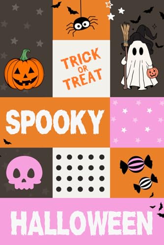Spooky Halloween Notebook | Cute Fall Journal for Women & Teens | Pumpkin, Ghost & Bat Pattern Journal | Aesthetic October Stationery Gift | Gloss Cover