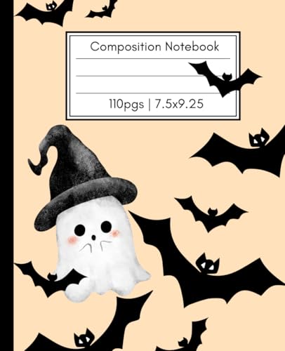 Composition Notebook: Cute Halloween Ghost & Bats | Kids Writing Journal | 110 Pages | 7.5 x 9.25 in | Glossy Cover
