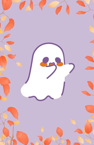 Cute Ghost Halloween Notebook – Dot Grid Journal with Fall Leaves, Purple Cover (100 Pages)