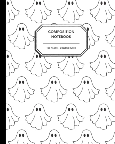 Cute Ghost Composition Notebook for Halloween | Black & White Spooky Cover | 120 Pages, College Ruled, 7.5 x 9.25 in: Spooky Season Ghost Stationery ... Cute Journal Gift | Matte Cover, Unbranded